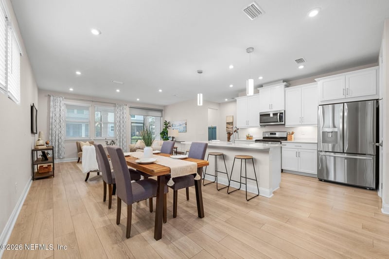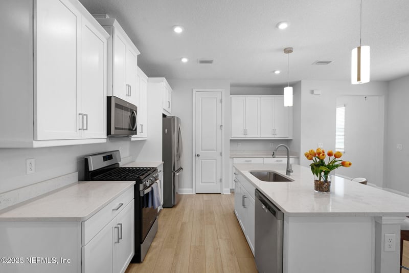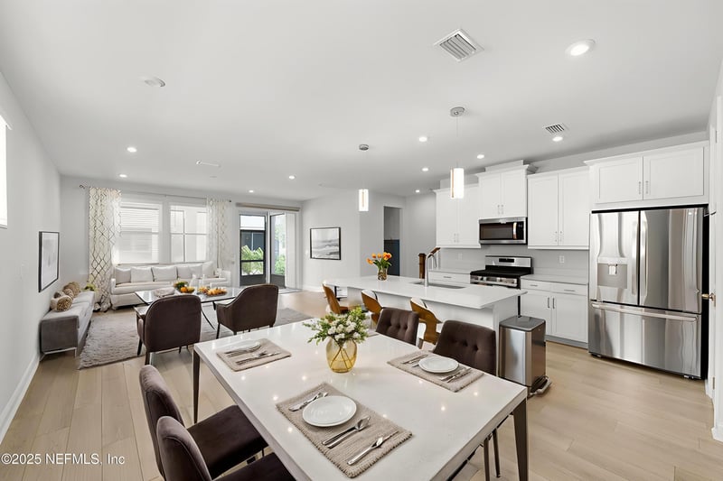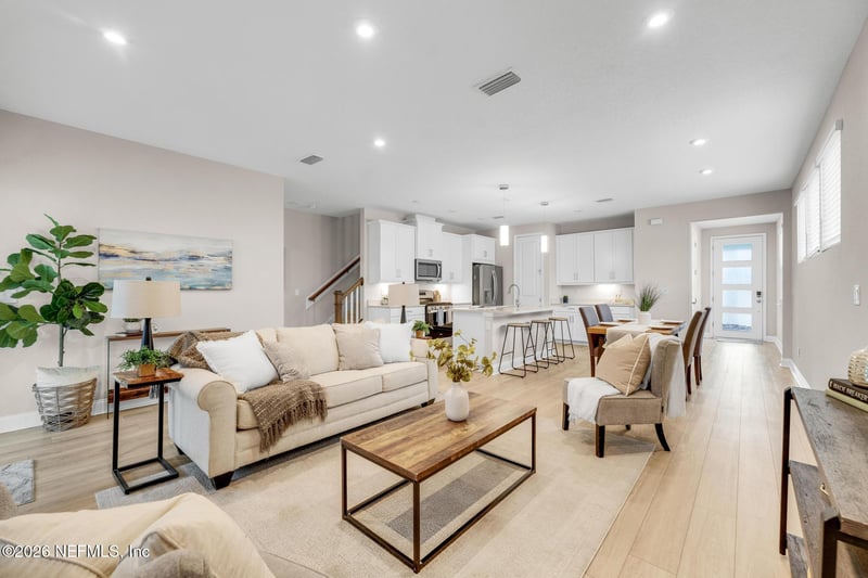 Listing details for 14125 Pier Ln, Jacksonville, FL 32224 : Experience low-maintenance living in the desirable Pablo Cove community. This contemporary Waverly floor plan is an end-unit townhome, offering extra privacy and an abundance of natural light throughout. It features 3 beautifully designed bedrooms, 2.5 bathrooms, and a versatile upstairs loft, perfect for a home office, playroom, or media space. The open-concept main floor showcases a modern kitchen with quartz countertops, stainless steel appliances, a spacious breakfast bar, and a generously sized walk-in pantry providing ample storage and convenience for everyday living and entertaining. Upstairs, all bedrooms are thoughtfully arranged for privacy, including a generous primary suite complete with a custom walk-in closet for enhanced organization and functionality. Additional upgrades include Shark Coating on both the patio and garage floors, offering durability and a clean, polished finish. The rear sliding door is fitted with remote-controlled electric blinds, adding both convenience and a modern touch to your indoor-outdoor living experience. Residents enjoy access to resort-style amenities, including a pool, clubhouse, and fitness center. Located just minutes from Mayo Clinic, UNF, St. Johns Town Center, and Jacksonville's beautiful beaches, this move-in-ready townhome offers the perfect blend of comfort, style, and location. Don't miss your chance to own in one of Jacksonville's most sought-after communities!
