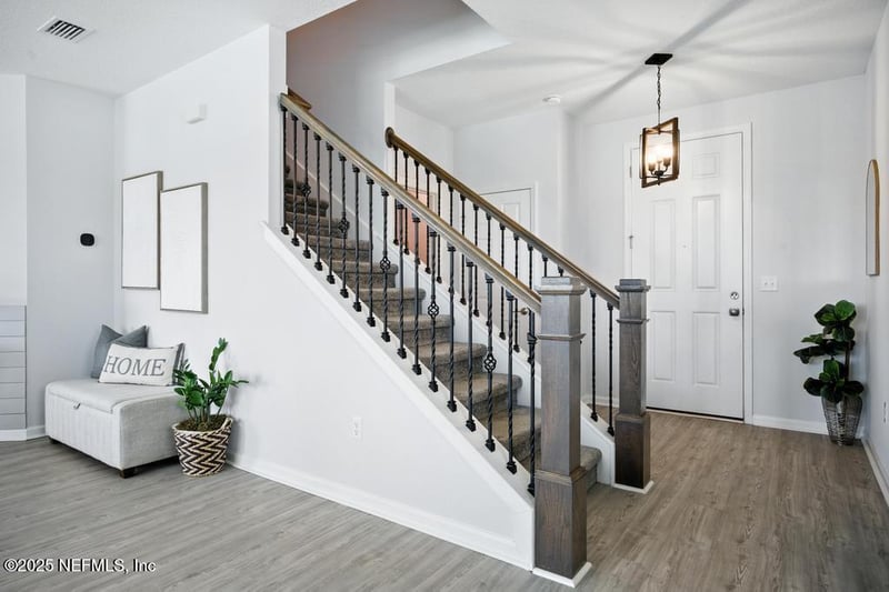 Listing details for 14402 Durbin Island Way, Jacksonville, FL 32259 : Call us for more details. This immaculately kept, 5-year-new waterfront home in highly coveted Bartram Creek is the one you've been waiting for - and it's move-in ready! Lovingly maintained and loaded with upgrades by the original owners, it offers the perfect balance of open entertaining space, spacious common areas, and generously sized bedrooms with stunning water views from nearly every room! Perfectly positioned just minutes from State Road 9-B and I-95 for an easy commute, only 20 minutes to the beach, and a short stroll to the vibrant brand new Durbin Pavilion Town Center for shopping, dining, movies, and entertainment. Step inside to this perfectly designed home - a bright, open-concept floor plan with luxury vinyl plank flooring, designer lighting, soaring 9-foot ceilings, and an upgraded kitchen that's both functional and stunning- featuring endless cabinetry, quartz counters, stainless steel appliances, an oversized single basin sink, 42'' upper cabinets with crown molding, and a custom shiplap breakfast bar that serves as the heart of the home. Upstairs, the oversized owner's suite is a true retreat, complete with a spa-inspired bath boasting a soaking tub, walk-in shower, and dual quartz vanity, plus an enormous walk-in closet. Two additional spacious bedrooms and a full bath with quartz counters and vanity space complete the second floor. Outside, relax on your covered lanai and soak in tranquil pond views from your fully fenced, generously size backyard oasis - PERFECT FOR A POOL! Zoned for top-rated schools and nestled in a community that offers a resort-style zero-entry pool, splash pad, playground, putting green, clubhouse, and year-round activities - all with LOW HOA fees and NO CDD fees - this home truly has it all.