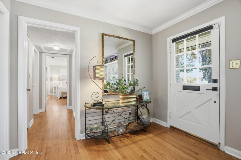 Listing details for 1452 San Amaro Rd, Jacksonville, FL 32207 : Welcome to a home that feels like a warm embrace, where midcentury charm meets modern elegance. Proudly situated on a large corner lot with lush landscaping and an 8 ft privacy fence, this 2 bedroom, 2.5 bath retreat offers comfort, character, and thoughtful details throughout. Gleaming original hardwood floors and spacious living and dining spaces that flow effortlessly invite you to linger and live fully with a large picture window and charming window seat, and built-ins for style and storage. Cozy evenings by the fireplace or peaceful mornings overlooking the tranquil backyard alive with songbirds. The kitchen blends practicality and sophistication with stainless Samsung appliances and thoughtful design touches. The primary suite is a private haven with an impeccably updated, spa inspired bath, while the generous secondary bedroom offers ample space for loved ones or guests. Working from home is a delight in the office, or a lovely option for a 3rd bedroom. Welcome Home!