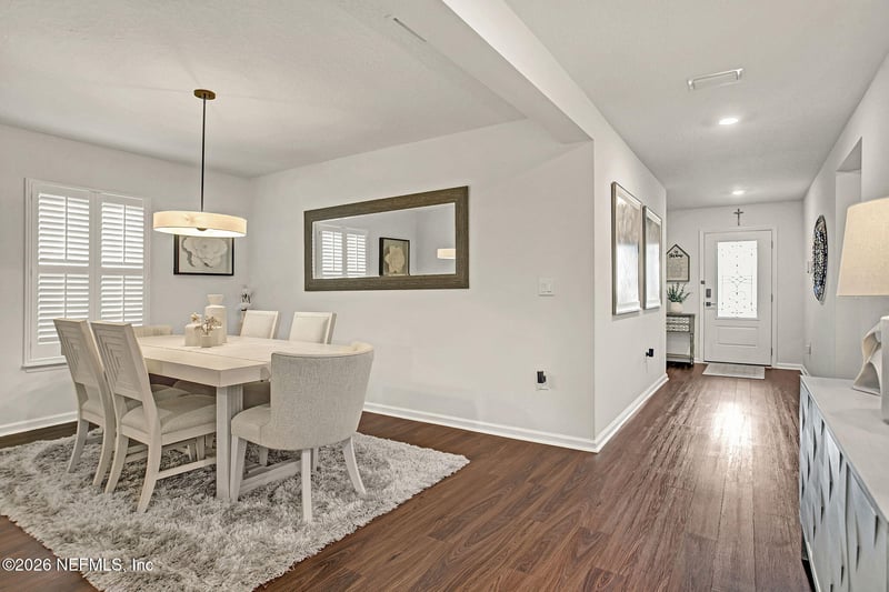Listing details for 14564 Needham Dr, Jacksonville, FL 32256 : Experience elevated Florida lifestyle living in this beautifully upgraded single-story ranch home overlooking a serene wooded preserve. The open-concept interior features luxury vinyl plank flooring, neutral designer colors, plantation shutters, and upgraded lighting throughout. The kitchen boasts bull-nosed quartz countertops, a striking glass tile backsplash, stainless steel appliances, and ample cabinetry, seamlessly flowing into spacious living and dining areas ideal for entertaining. The tranquil primary suite offers dual sinks, a walk-in shower, a decorative barn door, and a generous walk-in closet. A bright Florida sunroom and stenciled concrete patio provide inviting spaces to relax and enjoy peaceful preserve views. Complete with a two-car garage and impeccable curb appeal, this move-in-ready home blends style, comfort, and privacy for the ultimate Florida living experience.