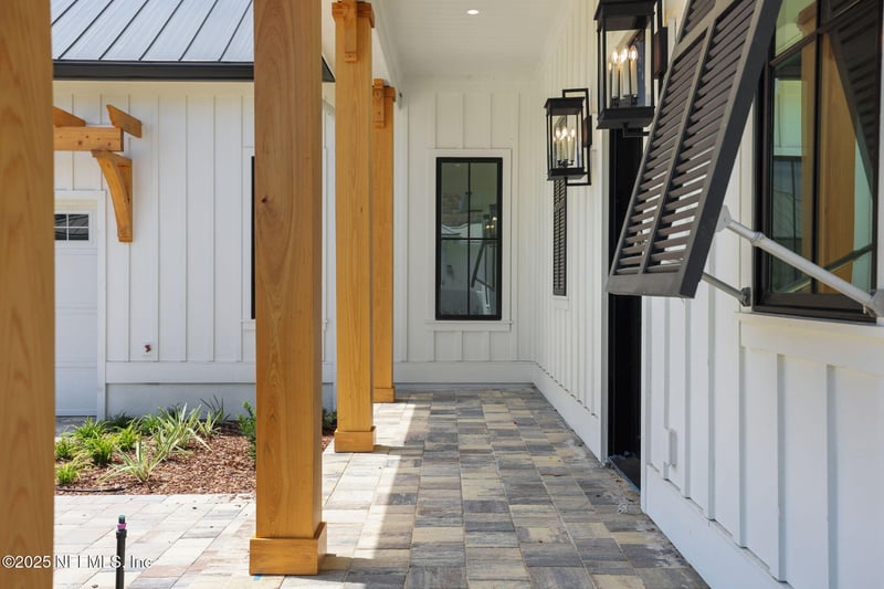 Listing details for 146 Whistling Palm Ct, Ponte Vedra, FL 32081 : Just completed-brand new construction & move-in ready! River Landing at Twenty Mile, the most sought-after address in Nocatee. This CUSTOM HOME community is situated along the Intracoastal waterway, and consist of waterfront and preserve homesites. Welcome to 146 Whistling Palm Court...This exquisite Modern Coastal Farmhouse offers an impeccable blend of timeless charm & relaxed seaside sophistication. Crisp board & batten siding, warm natural wood accents, and a durable standing seam metal roof, evoke classic coastal architecture, while clean modern lines & black accents provide a more contemporary vibe. With 11ft ceilings, an oversized 3-car garage, primary & secondary BR's on the 1st FL, this home has a grand & dramatic feel to it. The gourmet kitchen features Thermador appliances, custom white perimeter cabinetry paired w/ a vintage natural wood island, and elegant brass lighting accents. Wide plank wood flooring flows throughout adding warmth. Additional highlights include.. a fireplace, wet bar, 3 half baths (one is a dedicated pool bath), and a spacious rear lanai with a summer kitchen. A rated St. Johns Co schools. Builder is DF Luxury Homes by Marcus Meide.