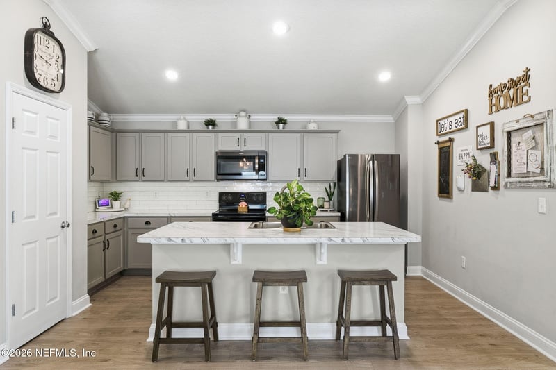 Listing details for 14751 Durbin Island Way, Jacksonville, FL 32259 : Welcome to Bartram Creek, where comfort and convenience come together in this beautifully maintained 3-bedroom, 2-bath home. Featuring a bright and open layout, this home is perfect for both everyday living and entertaining. The kitchen is the heart of the home, showcasing a large center island, solid surface countertops, tile backsplash, black appliances, and recessed lighting. It flows seamlessly into the dining area and spacious family room, creating an inviting and connected living space. Sliding glass doors lead to a covered, screened porch-perfect for enjoying your morning coffee or relaxing in the evenings while taking in the peaceful surroundings. The owner's suite offers a private retreat with a double vanity and a tiled tub/shower combination. Additional bedrooms provide flexibility for guests, family, or a home office. Enjoy resort-style community amenities including a sparkling pool, splash pad, playground, and cabana. Conveniently located near shopping, dining, and major roadways, this home offers the perfect blend of lifestyle and location. Don't miss your opportunity to make it yours! Bonus, no CDD fees!