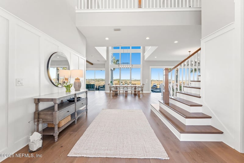 Listing details for 14853 Bonefish Dr, Jacksonville, FL 32250 : Set within the private, gated enclave of Palm Island, this exceptional custom residence delivers refined coastal luxury with sweeping salt marsh and Intracoastal Waterway views. Meticulously crafted with designer interior and exterior furnishings, this home is truly turnkey. The gourmet kitchen is a showpiece, featuring custom beam accents, a generous island, floor-to-ceiling cabinetry, quartz countertops, premium appliances, under-cabinet lighting, and a built-in pantry. The open-concept design flows effortlessly through 16-foot sliding glass doors to the covered lanai, creating seamless indoor-outdoor living. An elegant two-story foyer and dining area are framed by a dramatic wall of windows, capturing natural light, sunsets, and water views. The great room is anchored by a brick-faced gas fireplace with a wood mantle and custom bench seating. A private guest suite with ensuite bath completes the main level. Upstairs, the primary suite offers a tranquil retreat with custom ceiling details, water views, and a private balcony overlooking the Intracoastal. The spa-inspired bath features vaulted ceilings, dual apron sinks, dual shower heads, a freestanding soaking tub, two walk-in closets with custom built-ins, and nearby laundry room. A spacious loft overlooks the foyer and dining area, while three additional bedrooms, each private balcony access. One features a dedicated bath, while the others share a well-appointed bath.. The outdoor living space is designed for resort-style enjoyment, with a covered lanai, saltwater pool with sun shelf and in-pool seating, summer kitchen, outdoor bar, and fire pit- perfect for entertaining or relaxing at sunset. All outdoor furnishings convey for a seamless move-in-ready experience. Additional highlights include abundant storage, a spacious garage with coated flooring, overhead storage racks, and prewiring for two electric vehicle chargers. Completing the coastal lifestyle, the property offers deepwater access with a private dock, seating area, covered boathouse for a 30-foot, 10,000-pound vessel, and a floating dock with power, water, and lighting. Ideally situated within walking/biking distance to Isle of Palm Park, five minutes from the Mayo Clinic, shopping, and dining, a short ten-minute drive to Jacksonville Beach and Ponte Vedra Beach. Perfectly positioned and impeccably designed, this Palm Island residence embodies elevated waterfront living-Just bring the boat.