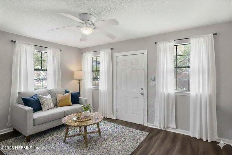 Listing details for 1489 5th St, Jacksonville, FL 32209 : This investment opportunity can be yours! This 2-bedroom Northside duplex offers classic charm and everyday ease. Cook with confidence in a kitchen featuring hardwood cabinets, great countertops, refrigerator, and electric stove/oven. The open layout includes hardwood flooring, ceiling fans, central A/C, and washer/dryer hookups. Enjoy quiet mornings on the porch and make use of the private yard space. Located near Edward Waters University, the Lavilla Heritage Trail, and the Jacksonville Farmers Market, this spot blends history, flavor, and convenience. One or more photo(s) have been virtually staged.