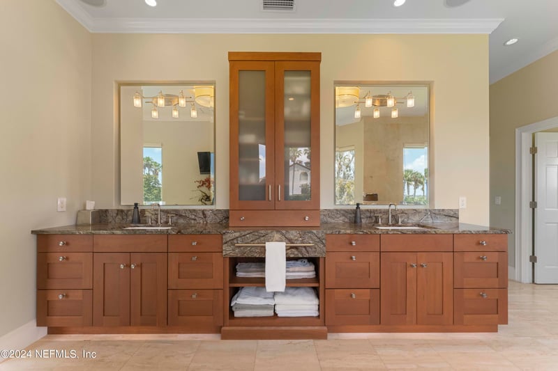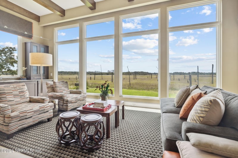 Listing details for 149 Lantern Wick Pl, Ponte Vedra Beach, FL 32082 : The natural panorama from this unique location is truly breathtaking. The owners of this home selected this premier estate lot in beautiful Marsh Landing for its size and the views for miles, including boats passing on the distant Intracoastal Waterway. Setting it apart from others, this home is full of design details to enhance your enjoyment. The floor plan is perfect for entertaining, with living areas connecting around the central kitchen, loaded with top appliances and custom cabinetry. At the touch of a button, the Lutron automated lighting system sets the stage for entertaining ease. Other eye-catching features: cabinetry with built-in lighting; spa-like primary bathroom; expansive butler's pantry; smooth high ceilings; bar area w/custom display space & storage; natural stone floors; grand patio off the kitchen/family room (potential pool area- see rendering). 240v outlet in the 814sf 3-car garage. Bedroom suites on staggered floors for privacy. Come see -- there's more!