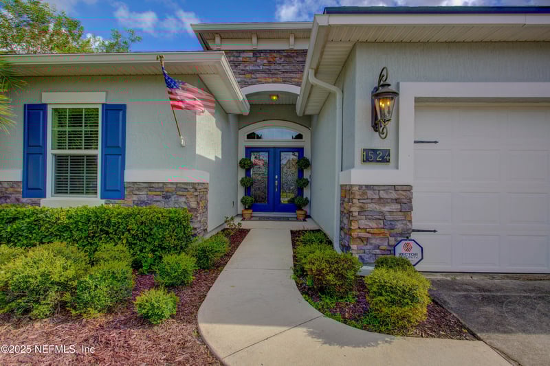 Listing details for 1524 Autumn Pines Dr, Orange Park, FL 32065 : Welcome to 1524 Autumn Pines Dr. located in the beautiful Eagle Landing, a neighborhood known for more than just luxury living. It is a community designed for connection, recreation, and relaxation. The retreat style amenities provide more than the occasional escape, but rather a year-around resort-like lifestyle! 1524 Autumn Pines was built in 2017 so insurance will be a breeze. Inside the home you'll find a welcoming foyer with a wood-like ceramic tile that leads you into the living space where elegantly upgraded ceilings accompany the electric fire place and pond view from the sliding glass back doors. The expectation shattering kitchen boasts an oversized quartz island with state of the art stainless steel appliances. There was attention paid to every detail when building this home including the drop in sink, timeless glass front cabinetry, thoughtful double ovens, and the microwave being built right into the island. The carefully selected finishes in your primary suite include double tray ceilings, a large bay window, and large walk in closet. The oversized bathroom features a smart mirror to help you keep up with the enhanced lifestyle offered by this community. In addition to the mirror, you'll find the ever so necessary private toilet, as well as a separate glass shower and garden tub. The back yard gives you the serene water view you've always dreamed of. Don't wait, schedule your tour today to experience the luxury 1524 Autumn Pines has to offer.