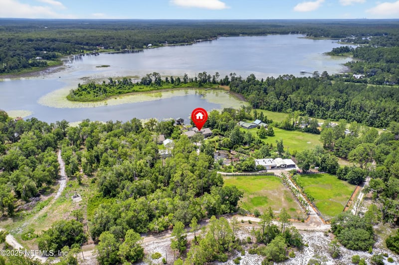Listing details for 153 Sunny Ln, Pomona Park, FL 32181 : PRIVACY Welcome to this one-of-a-kind luxury lakefront estate on scenic Lake Broward, set on 4.89 fully fenced & gated acres at the end of a quiet dead-end street. With 150 feet of direct waterfront offers rare freedom, privacy, & unmatched amenities. Spanning 6,500 sq ft, this thoughtfully designed home features 6 spacious bedrooms, each with its own ensuite bathroom and deck w/ a durable metal roof—perfect for enjoying morning coffee or evening sunsets with lake or nature views. The heart of the home revolves around resort-style outdoor living: A two-story dock w/ boat lift and jet ski lift Screened heated pool w/ multiple waterfalls, a grotto, hot tub, and a built-in gas firepit Outdoor tiki kitchen with grill & refrigerator—perfect for entertaining lakeside year-round Inside, the home continues to impress with elegant features including: A spiral staircase leading to a cozy library w/ panoramic lake views 3 cozy fireplaces & A private PUB with Pool table *Open More pool table included Car lovers and hobbyists will appreciate the room for 14+ vehicles, with multiple garages, multiple RV and boat storage, sheds, and a barn with tack room for equestrian or farm needs. Designed with pets in mind, the estate includes: Air-conditioned outdoor dog kennels A dedicated pet washroom in the main house, complete with wash station and indoor kennels The property is accessed via a tree-lined circular driveway, offering a stunning and private approach to this estate retreat.