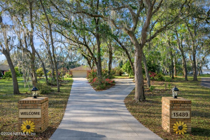 Listing details for 15489 Cape Dr, Jacksonville, FL 32226 : ''One of Jacksonville's most affordable opportunities for acreage + navigable waterfront living.'' A rare luxury offering, this one-of-a-kind estate spans over 5 acres and boasts an extraordinary 726 feet of waterfrontage. Its unique shape creates sweeping marsh views, unmatched privacy, and a serene natural setting unlike anything else on the market. Thoughtfully designed, the residence features an east wing for private living and a west wing perfectly suited for business operations, multigenerational living, or an in-law suite. A long, tree-lined drive with a circular approach sets the tone for a grand arrival. With backyard access for enjoying the St. Johns River and Nassau Sound, this property is a dream for boating, fishing, wildlife lovers, and those seeking an exceptional outdoor lifestyle. A truly distinctive estate crafted for buyers who demand privacy, flexibility, and luxury. CrossListed 2136997