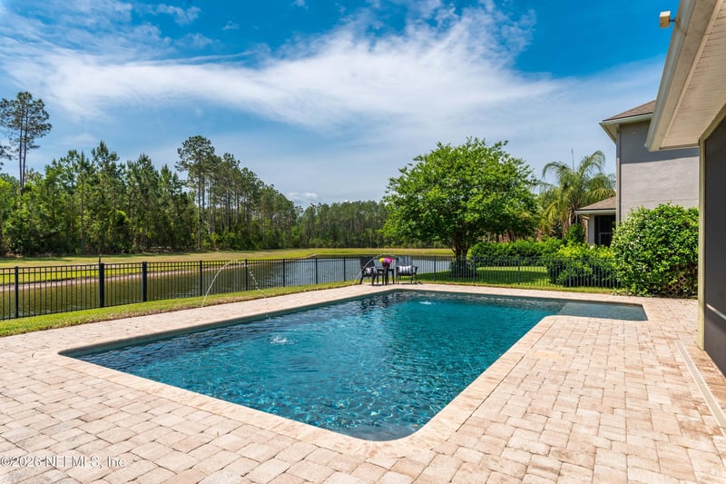 Listing details for 157 Longwood St, St Johns, FL 32259 : Welcome to this beautiful waterfront pool home in Durbin Crossing. Offering 4 bedrooms, 3.5 bathrooms, and a spacious upstairs bonus room, this home provides a flexible layout ideal for both everyday living and entertaining. The primary suite is conveniently located on the main floor, while upstairs features 3 additional bedrooms, including one with a private ensuite, along with 2 full bathrooms and an oversized bonus room. Filled with natural light, the home showcases plantation shutters throughout and an open-concept downstairs that overlooks the pool and serene water views. Step outside to an enclosed patio, sparkling pool, and a peaceful backyard setting perfect for relaxing or hosting guests. Located in one of St. Johns County's premier established communities with exceptional amenities. Updates include two HVAC systems (2021), windows and slider (2018), irrigation panel (2023), and water softener (2021).