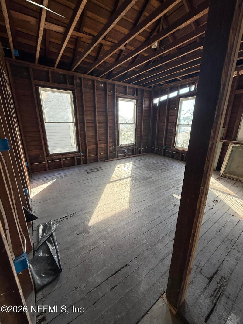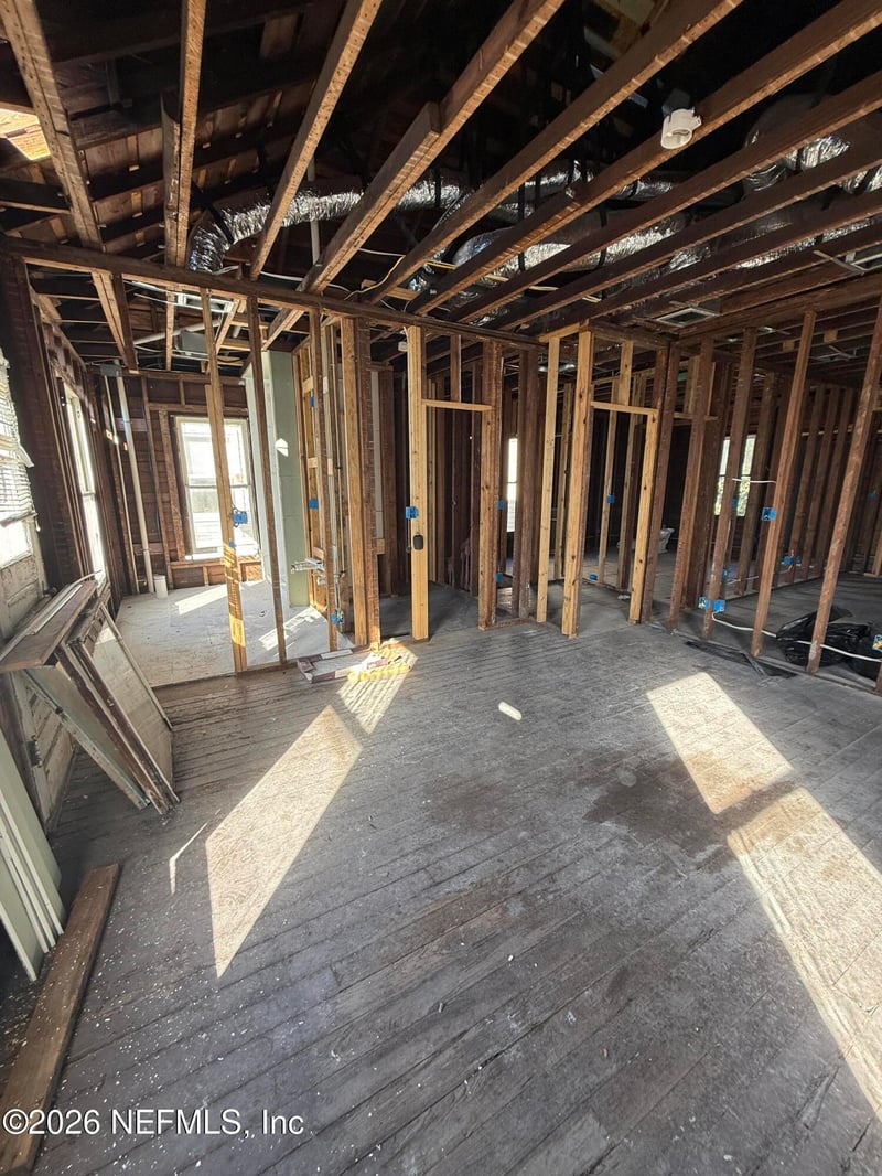 Listing details for 1635 Hubbard St, Jacksonville, FL 32206 : Investor Opportunity in Historic Springfield Located in the heart of Jacksonville's Historic Springfield district, this early-1900s wood-frame home presents a prime opportunity for investors, renovators, or builders looking for a full rehabilitation project. The property sits on a deep lot with alley access and is surrounded by a mix of restored historic homes and new construction. Much of the home has already been taken down to the studs, providing a clean slate to reimagine the layout while preserving historic character. Visible structural elements, elevated foundation, and original architectural details offer strong potential for a period-correct renovation or modern reinterpretation. Exterior improvements have been partially started, including new house wrap in areas, offering a head start on redevelopment. Interior framing, open floor plan potential, and existing stair placement allow flexibility for a multi-bedroom layout. Sold strictly As-Is. Seller mak