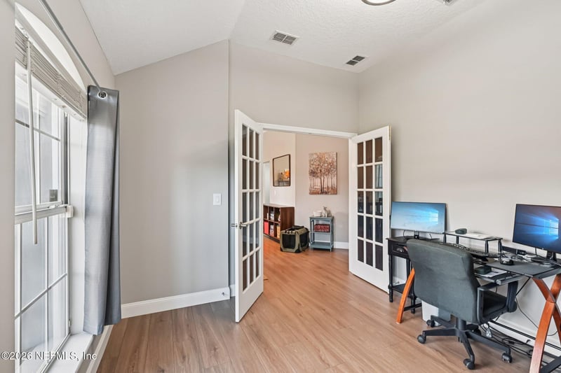 Listing details for 1684 Hollow Glen Dr, Middleburg, FL 32068 : ***Mortgage savings may be available to some buyers*** Ideally located near shopping and dining, this well maintained home combines modern convenience with functional design. The spacious interior is highlighted by 10-foot ceilings and a versatile bonus room with French doors, perfect for an office or playroom. The eat-in kitchen, features custom cabinetry, granite countertops, a walk-in pantry, and 2021 appliances. The primary suite offers a peaceful retreat with a large bay window overlooking the pond, complemented by an ensuite with double sinks, a walk-in shower, and a soaking tub. Every closet features custom shelving for effortless organization. Significant recent updates provide peace of mind, including a new roof (2021), fresh exterior paint, and a new water heater (2025). Step outside to enjoy resort-style community amenities just minutes away, including a pool, playground, sports courts, and frisbee golf. No CDD and a LOW HOA! Tour Today!