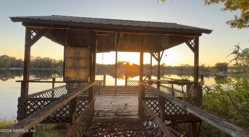 Listing details for 169 Jewel Ave, Interlachen, FL 32148 : Fishing is a fantastic experience here! Immerse yourself in the tranquil waters of this delightful property right on Lake Rocky. This serene spot is great for swimming and fishing enthusiasts. Take advantage of boat trips on the three interconnected lakes and enjoy stunning sunrises over Lake Jewel from your living room, as well as sunsets from your back porch overlooking Lake Rocky. For those craving more extensive boating, the canal leads to Lake Faye, offering further fishing opportunities. The spacious home includes both a living room and a family room with a cozy fireplace, great for entertaining. Outdoors, find a covered dock with a fish cleaning sink, lush landscaping featuring mature fruit trees, and a large lakeside deck, all nestled on a peaceful dead-end street. Approaching Jewel Avenue will lift your spirits as you prepare to create lasting memories!