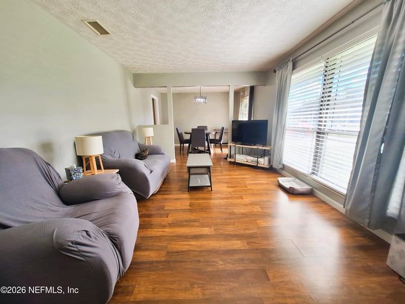 Listing details for 1692 Bartlett Ave, Orange Park, FL 32073 : Move-in ready with upgrades already done! This refreshed 3BR/2BA home features a freshly painted interior, brand-new flooring in the kitchen and primary suite. Enjoy both a living room and family room, offering flexible space for entertaining or everyday living. The spacious primary suite includes an en-suite bath and walk-in closet. A large enclosed, screened lanai provides approximately 300 sq ft of additional air-conditioned living space, perfect for a home office, gym, or relaxing year-round. The large, private backyard is fully enclosed with vinyl fencing. A 2-car garage adds extra storage. Some updates include: HVAC and air handler (5 yrs), vinyl fencing (5 yrs), refrigerator (2 yrs), new toilet in guest bath, fresh paint throughout, some new flooring, and all new smoke detectors installed December 2025. Conveniently located near NAS Jax, Orange Park Mall, shopping, dining, and major roadways. Clean, updated, and ready for its next owner—schedule your showing today!