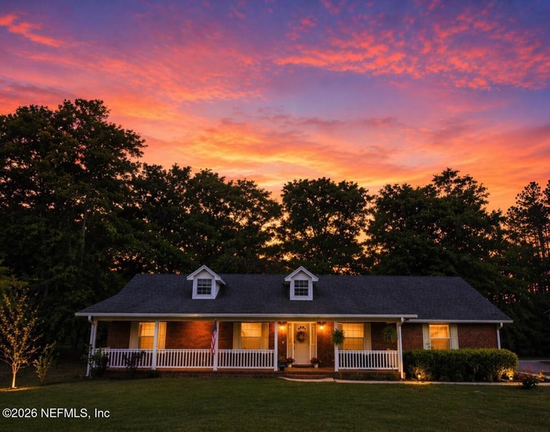 Listing details for 17098 Cross Branch Rd, Hilliard, FL 32046 : Seller Ready to work with Serious Buyers! Assumable 4.75% rate of VA quaiified buyer. Rare 5.19-Acre All-Brick Estate | Massive Shop | Future Build Potential Turn-Key Peace of Mind: Enjoy a BRAND NEW ROOF (installed before closing), a 2023 hot water heater, and a 2017 HVAC. Experience the perfect blend of modern luxury and rural utility on this stunning 5.19-acre estate. This all-brick home features a fresh, contemporary interior with granite countertops, stainless steel appliances (including double ovens), and designer lighting. Every bathroom has been beautifully updated, and the wood-burning fireplace--recently cleaned and serviced--serves as the home's inviting centerpiece. Smart features abound, including a camera doorbell, smart deadbolt, and remote-access garage with 60 AMP EV charging. The Ultimate Hobbyist Setup: The property is a showstopper for professionals and hobbyists, featuring a 40x26x12 wired shop with dual 12' chain-driven roll-up doors. Additional infrastructure includes a 2-stall barn, a $5k custom chicken coop, a dedicated mower shed, and carport with 30 AMP service. All three refrigerators (house, garage, and shop) and the shop worktable convey! Land & Expansion Opportunity: The acreage is fully cross-fenced with solar electric fencing, perfect for livestock, and includes a producing orchard of blueberry bushes, apple, and lemon trees. The back 3(+/-) acres have been cleared and fenced, offering incredible investment potential; with a separate entrance already available from McIntosh Rd, this portion of the lot could potentially be split for a second homesite.