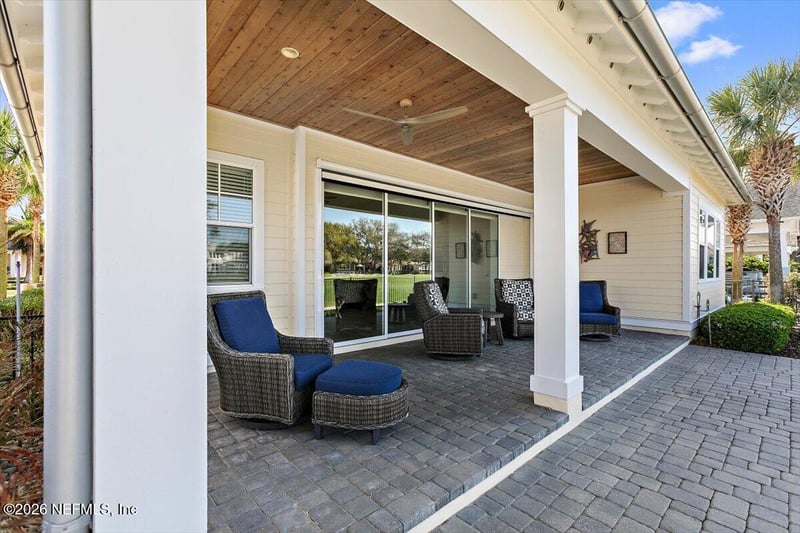 Listing details for 1714 Atlantic Beach Dr, Atlantic Beach, FL 32233 : The largest home currently available in Atlantic Beach Country Club, offering more space to live, entertain, and relax in one of the area's most sought-after coastal golf communities. Upgrade from the included Social Membership to Sports or Full Membership within 30 days of closing, skip the long waitlist, and immediately enjoy the club lifestyle just minutes from the beach. Designed for both comfortable everyday living and effortless entertaining, the spacious, open floor plan offers 4 bedrooms, 3.5 baths, and a flex room with barn doors-perfect for a home office, playroom, or study. The chef's kitchen centers around a large granite island and flows seamlessly into the living areas and outdoor spaces. Four-panel pocket sliders disappear into the wall, opening to a covered lanai with tongue and groove ceilings and sweeping water and golf course views of the 8th hole--perfect for morning coffee or sunset evenings. Upstairs, a versatile loft with bedroom and full bath creates a flexible retreat ideal for guests, a mother-in-law suite, or a teenager's hideaway. Additional highlights include an expanded primary suite with extended walk-in shower, coffered ceilings in the great room and primary bedroom, motorized retractable screen and sun-shade on the sliders, custom built-in media center, abundant storage, fenced yard, classic metal roof, and epoxy-finished garage floor. Within the last year, the home has been thoughtfully updated with a fresh landscape transformation, new washer/dryer, new tankless water heater, a new upstairs A/C unit, and a freshly painted interior and exterior. Enjoy the best of Atlantic Beach living with championship golf, tennis, pickleball, dining, fitness center, pool, and a vibrant calendar of social events, all within the community and just minutes from the beach with easy access for walking or biking to the sand.