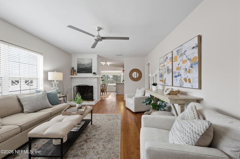 Listing details for 1714 Furman Rd, Jacksonville, FL 32217 : Welcome to this beautiful 1953 concrete block home in the heart of the desirable Lakewood area of San Jose. Offering 1,663 square feet, 3 bedrooms and 2 baths, this home blends classic character with thoughtful updates. Original hardwood flooring and vintage tile in the primary bath preserve its mid-century charm, while the updated kitchen with granite counters and stainless steel appliances bring modern convenience. The open living space is anchored by a cozy brick fireplace, creating a warm and inviting atmosphere. A spacious dining room overlooks the backyard, where lush landscaping surrounds a private in-ground pool, perfect for relaxing evenings or entertaining guests. The extra long driveway offers ample space for boat or RV parking and No HOA! Well loved over the years, this home offers solid construction with opportunity for cosmetic updates and bathroom renovations to reflect a buyer's personal style. Timeless details and the POOL make this Lakewood gem a rare opportunity.