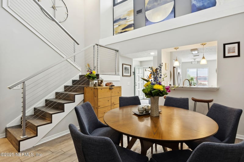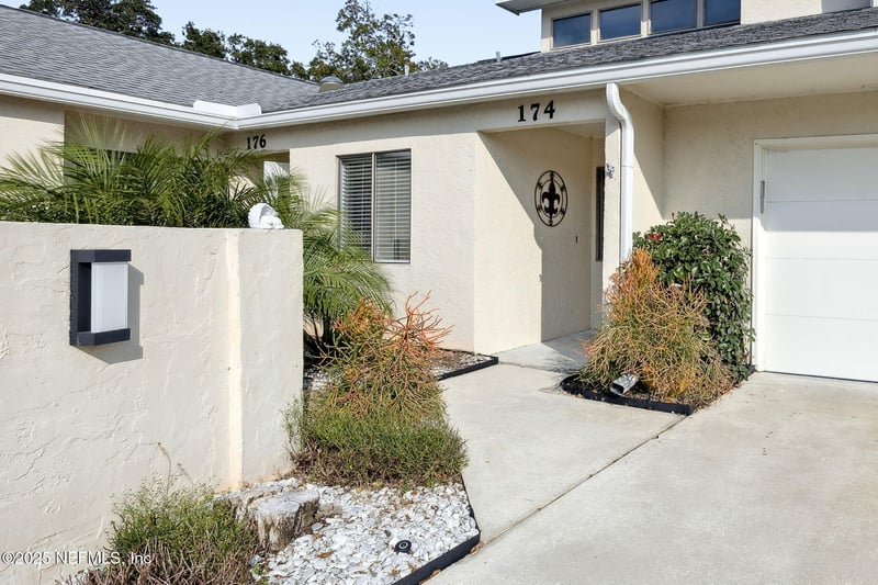 Listing details for 174 La Pasada Cir, Ponte Vedra Beach, FL 32082 : Meticulously updated Ponte Vedra Beach home in sought-after Village of Solano. This 3 bedroom, 2 ½ bathroom townhome blends classic and modern styles. Updated kitchen with stainless appliances, granite countertops and breakfast nook. The great room features a spacious dining/living area and wood burning fireplace. The vaulted ceiling leads to clerestory windows that flood the home with light. The primary bedroom features an en-suite bathroom, custom walk-in shower and walk-in closet. Wood-look tile floors throughout the main floor. Access the screened-in lanai from both the great room and primary bedroom. The garage features a Shark Coating floor and EV charging outlet. Hardwood floors throughout the 2nd floor and staircase with modern cable railings. Two bedrooms, with custom walk-in closets and updated bathroom complete the second floor. Walk to the beach. Shopping, dining, TPC, are just minutes away from this gated community with a club house, pool, and tennis court. Low HOA fee