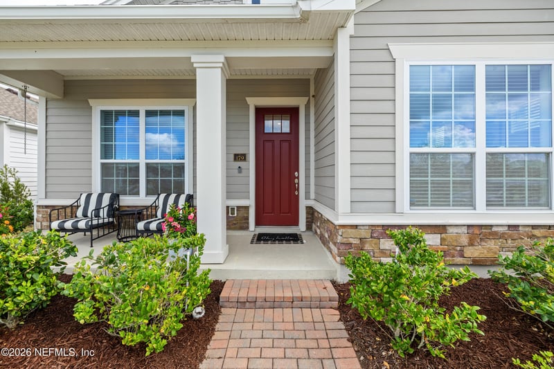 Listing details for 179 Beale Ave, St Augustine, FL 32092 : This beautifully appointed single-story residence blends timeless design with modern functionality, offering an open-concept layout filled with natural light and thoughtfully curated finishes throughout. From the moment you arrive, the charming front porch and manicured landscaping set the tone for what awaits inside. Step into a spacious, airy interior where wide-plank flooring flows seamlessly through the main living areas. The heart of the home is a stunning chef's kitchen featuring an oversized quartz island, abundant cabinetry, stainless steel appliances, gas range, and designer lighting--perfectly positioned to overlook the dining and living spaces for effortless entertaining. The primary suite is a private retreat, complete with a tray ceiling, generous proportions, and a spa-inspired en-suite bath showcasing dual vanities, a large walk-in shower, and a spacious walk-in closet. Additional bedrooms offer flexibility for guests, family, or a dedicated home office. Thoughtful details continue throughout--from the soft, designer-inspired secondary spaces to functional storage solutions and a well-designed layout that maximizes both comfort and livability. Outside, enjoy a fully fenced yard ideal for relaxation, pets, or play, with a paver driveway and rear-entry garage adding both convenience and curb appeal. The community setting offers a picturesque backdrop with nearby water views and beautifully maintained surroundings.