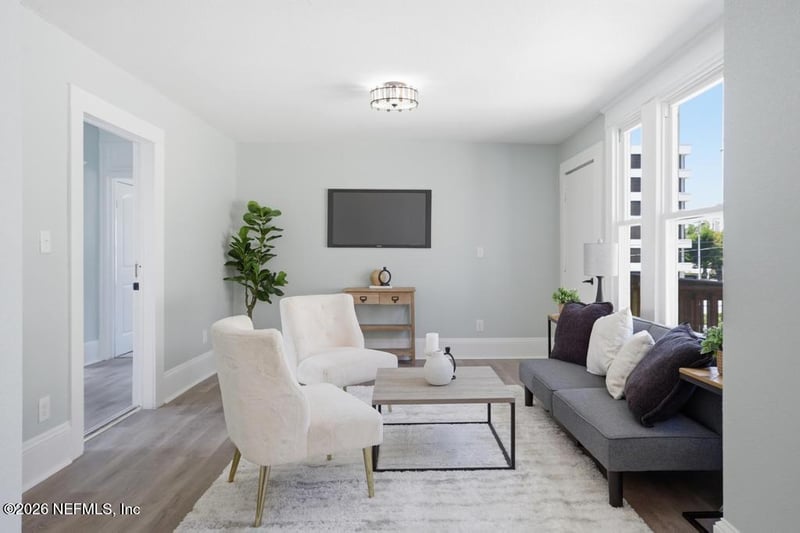 Listing details for 1825 Perry St, Jacksonville, FL 32206 : House hack your way into homeownership at 1825 Perry St! This gorgeously renovated duplex features two spacious units-downstairs offers a 2BR/1BA with 1000 sq ft, while upstairs is a 3BR/2BA with 1,080 sq ft. Live in one and rent the other, with potential to offset your mortgage by up to $1,700/month (or more as a short-term, quarterly, or mid-term rental for traveling nurses). Perfect for first-time buyers or savvy investors ready to build wealth while living comfortably. Separate entrances provide privacy and flexibility for long-term or short-term rental income. Located just minutes from UF Health Jacksonville, making it ideal for medical professionals seeking a quick commute. Enjoy being close to all that Downtown Jacksonville has to offer--restaurants, breweries, live music, sporting events, the riverfront, and more. Turnkey, income-producing, and positioned for both lifestyle and financial growth!