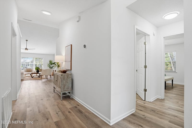 Listing details for 1838 Cardinal Ct, Jacksonville Beach, FL 32250 : Welcome to this beautifully updated 3-bedroom, 2-bath home with an office in the highly desirable Sanctuary community of South Jacksonville Beach. Situated on a peaceful lakefront lot, this home offers both comfort and scenic views in a private, gated neighborhood just minutes from the beach. Step inside to find brand-new LVP flooring, fresh paint throughout, and updated lighting fixtures that give the entire home a bright, modern feel. The spacious office—complete with its own fireplace—makes an ideal workspace, reading room, or flex area. Designed with accessibility in mind, the home features thoughtful handicap-accessible elements that can easily be modified if preferred. Major systems are well cared for, including a newer roof, newer HVAC, and a whole-home generator for peace of mind during storm season. Outside, the driveway and walkways surrounding the home have been upgraded with beautiful pavers, enhancing curb appeal and providing a clean, modern look. Outdoor living is effortless with tranquil lake views and plenty of space to relax and unwind. Electric awning covers most of back porch offering shade during hot days. Neighborhood amenities include nature walk along intracoastal waterway, pool area, tennis and pickleball courts. Enjoy the quiet, coastal lifestyle with the convenience of nearby shops, restaurants, and the vibrant Jacksonville Beach community. This move-in-ready home combines modern updates, functionality, and an unbeatable locationtruly a must-see!