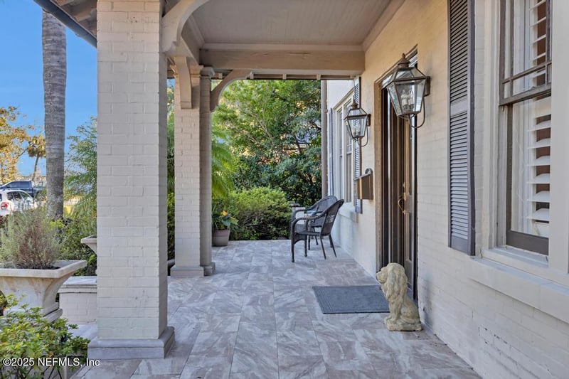 Listing details for 1880 Edgewood Ave, Jacksonville, FL 32205 : With Grand River views in the heart of Historic Avondale, this ''Prairie School'' influenced design was built in 1924 and enjoys a colorful past as the ''Bootlegger House''. A full renovation in 2015 is timeless with today's modern standards. A wide front veranda welcomes you to enter between twin copper lanterns and beveled glass entry. A grand entry foyer leads to spacious traditional Living and Dining rooms, plus sunlit side porch with river views. The kitchen is a cook's delight with newer stainless gas appliances, travertine counters, solid wood cabinetry and separate laundry with antique farm sink. Up the classic staircase are 4 large bedrooms and 3 full baths. The primary suite includes a sun/sitting room, private bath, walk-in closet and great river views.In the back yard is entertainment central with gas fire pit and summer kitchen grill. A separate building with it's own address features a studio and 2 car garage down and a full apartment up for Family or Air B&B .