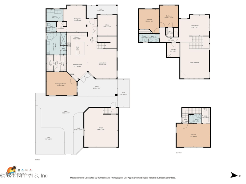 Listing details for 1906 Loop Pw, St Augustine, FL 32095 : OPEN HOUSE 3/21 1-3 Welcome to this gorgeous Key West-style home filled w/ light, bright living spaces throughout! The spacious chef's kitchen offers abundant cabinet & counter space & opens to a sunny great room w/ soaring ceilings--perfect for everyday living & entertaining. The first-floor owner's suite is a true retreat, featuring a double vanity, relaxing garden tub, walk-in shower, & generous his-and-her closets. Also on the main level, you'll find a designated office, formal dining room, powder bath, & convenient laundry room. Upstairs, enjoy two spacious bedrooms, full bath, & versatile loft area--ideal for a workout space, playroom, or additional lounge. Step outside to a beautiful paver patio & private courtyard complete w/ firepit & plenty of space for grilling & entertaining. The semi-detached 2-car garage w/ rear access includes a private upstairs suite w/ 4th BR & full bath, making it perfect for guests, a teen retreat, home office, studio, or entertainment space. This stunning 4-BR 3.5 bth with a 2-car garage truly has it all! Located in the highly sought-after community of Palencia, residents enjoy exceptional amenities including tennis courts, resort-style pools, a state-of-the-art fitness center, playgrounds, and more. Don't miss your chance to make this beautiful home yours!