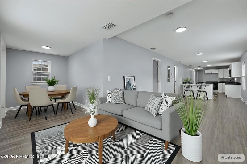 Listing details for 1959 14th St, Jacksonville, FL 32209 : Welcome home to this recently renovated property with stylish LVP flooring throughout. Enjoy an updated kitchen and two beautifully refreshed bathrooms, all designed with today's buyer in mind. The open-concept layout keeps the kitchen connected to the living and dining spaces, making gatherings effortless. Featuring four bedrooms, two full baths, and an interior laundry room, this home also offers peace of mind with major upgrades including a new A/C, new electrical panel, newer windows, and updated plumbing. Photos virtually staged, appliances not included. Seller requests all financed offers seek prequal from partner NewRez. See document section.