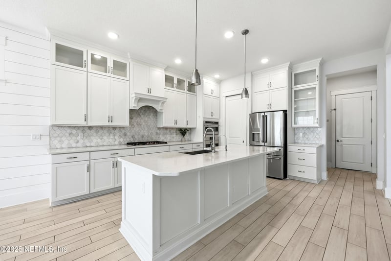 Listing details for 203 Westcott Pw, St Augustine, FL 32095 : *Open House - SAT 1/31 from 11-2PM!* Stunning, EnergyStar Certified home! 5 bed, 3.5-bath executive home w office & loft is situated on a huge 0.33-acre corner lot in the exclusive gated Markland community! You'll love the landscaped front yard, wide paver driveway, covered front porch & 3-car garage w epoxy floors & mini-split A/C. Inside, the home shines w thoughtful upgrades: beautiful wood-look tile floors, soaring ceilings, upgraded baseboards & door casings, custom trim work & abundance of windows that flood the home with natural light. The gourmet kitchen is a true show-stopper featuring quartz countertops, upgraded double-stacked white cabinetry with crown molding, beautiful tile backsplash, high end Cafe line appliances, large pantry w wood shelving & dining area overlooking the spacious backyard. Open & inviting living room showcases 2-story ceilings & 3 panel glass sliding doors - ideal for seamless indoor/outdoor living. The primary bedroom offers a private retreat w large closet & access to laundry room! The luxurious en suite bath features dual sink vanities, custom frameless shower & relaxing garden tub. Additional interior highlights include spacious secondary bedrooms, open & airy loft, private office w double doors & formal dining room w elegant lighting. Tons of storage throughout! Relax & entertain on the large screened paver lanai w tranquil lake views, pre-plumbed for a summer kitchen. The expansive, fully fenced backyard offers plenty of room for a fire pit, garden, play area or your dream pool. The laundry room is fully equipped w abundant cabinetry, folding counter & sink. Extra features include under-the-stairs storage, water softener w reverse osmosis, smart thermostat & whole-home gutters. A community park sits just across the street & residents enjoy Markland's world-class amenities: resort-style pool, fitness center, kayak launch, fishing dock, dog park, sports courts & more. Prime Location: easy access to I-95 & just minutes from shopping, dining & Downtown St. Augustine. Zoned for top-rated St Johns County schools. Don't miss this incredible opportunity - this gem won't last!