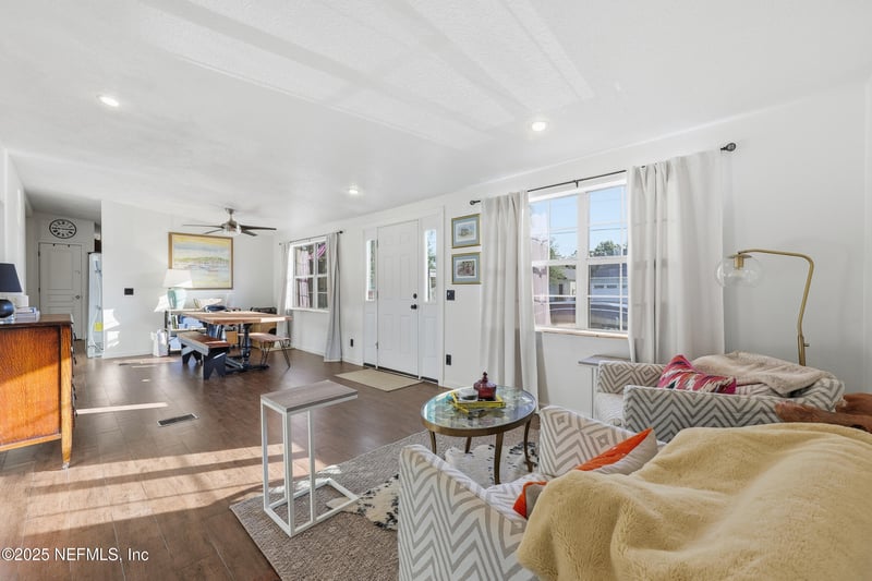Listing details for 2040 Alley Rd, Jacksonville, FL 32233 : Affordable Beach Living- Just 1.5 Miles to the Ocean! Experience the perfect seaside lifestyle in this beautifully renovated home, ideally located just steps from the Dutton Island Preserve Kayak Launch and Pier, and a short bike ride to Hannah Park. This home offers over 1,700 sq. ft. of modern living space, with tile flooring throughout and an upgraded kitchen featuring granite countertops, stainless steel appliances. With 3 bedrooms and 2 full bathrooms, this home provides comfort and style. The master suite is a true retreat, featuring a fully tiled walk-in shower with dual showerheads, a stunning barn door, walk-in closet, and a large vanity. The two additional bedrooms share a bath with both a tub and shower.The open-concept family room is perfect for gatherings, with sliding glass doors leading to a wrap-around deck and spacious backyard—ideal for family barbecues and also includes a built in putting green. Home is on a large lot and could possibly be subdivided.