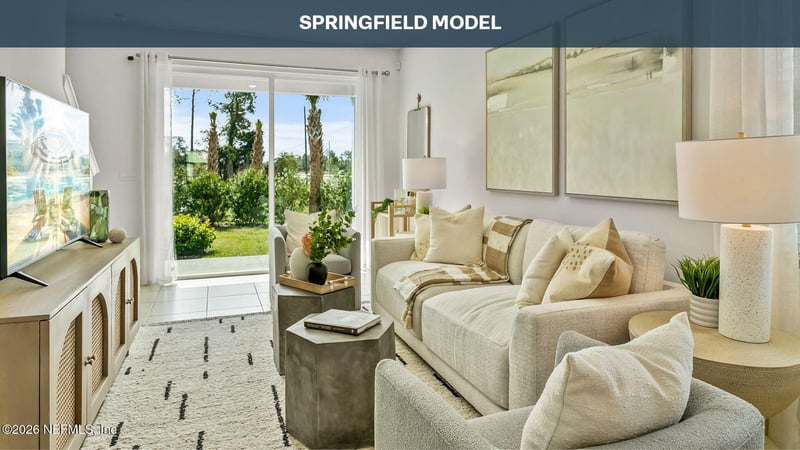 Listing details for 209 Ayamonte Rd, St Augustine, FL 32084 : The Springfield townhome is a thoughtfully designed floor plan that offers a surprising amount of space and comfort within approximately 1,308 square feet. With three bedrooms and 2.5 bathrooms, this inviting two-story home is ideal for homeowners seeking a functional layout that still feels open and bright. The main level features a seamless flow between the kitchen and living area, creating a welcoming environment for both relaxing and entertaining. The kitchen is designed with ample counter space and storage, making meal preparation easy while staying connected to family and guests in the adjacent living room. Sliding glass doors bring in generous natural light, filling the home with warmth and enhancing the open feel of the living spaces throughout the day. Upstairs, the primary suite provides a peaceful retreat, complete with a spacious walk-in closet and a well-appointed bathroom with a large vanity.
