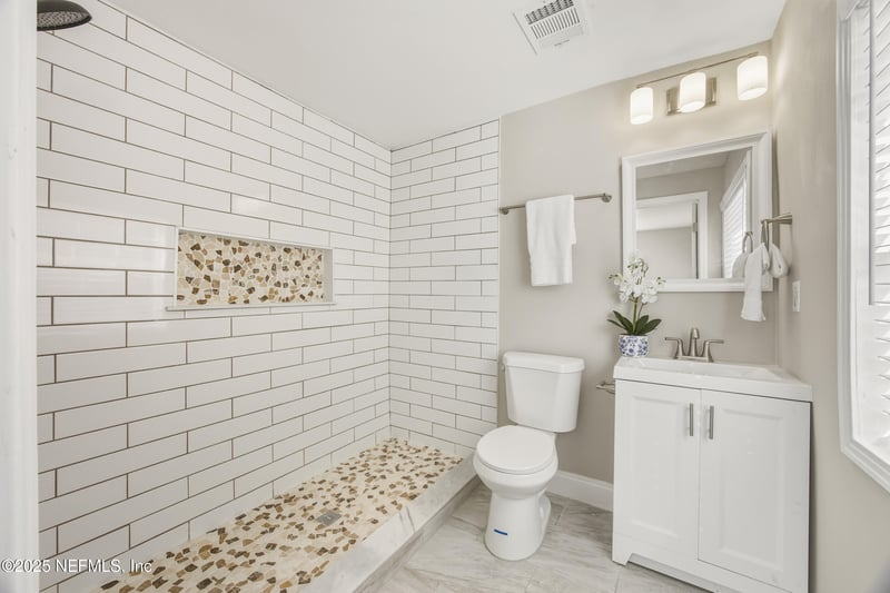 Listing details for 2107 Ashland St, Jacksonville, FL 32207 : Fully renovated 3BR/2BA home thoughtfully re-imagined from top to bottom. This is not a cosmetic update — major improvements include professionally leveled floors, new wood-look LVP flooring, fresh interior and exterior paint, and multiple replaced interior doors for a cohesive modern feel. A true value-add renovation created a spacious primary suite with a brand-new oversized bathroom and walk-in closet. Both bathrooms have been updated, and a new linen closet adds smart storage. Kitchen features updated cabinetry and brand-new stainless steel appliances. Major upgrades include a new permitted roof (Aug 2025), repaired HVAC, new windows and blinds, partial new siding, and electrical safety upgrades. Exterior highlights include a new concrete driveway, new entry steps, exterior lighting, and refreshed landscaping. Located minutes from San Marco, Riverside, and downtown. Move-in ready with real upgrades — not a surface flip. Outside, you'll find a low-maintenance yard with space to relax, entertain, or simply enjoy the quiet street. It's peaceful without feeling disconnected. Located just minutes from San Marco, Riverside, downtown Jacksonville, parks, shopping, and dining, this home offers convenience without sacrificing charm. If you're looking for a move-in-ready home that feels modern, welcoming, and full of character  this is one you don't want to miss.