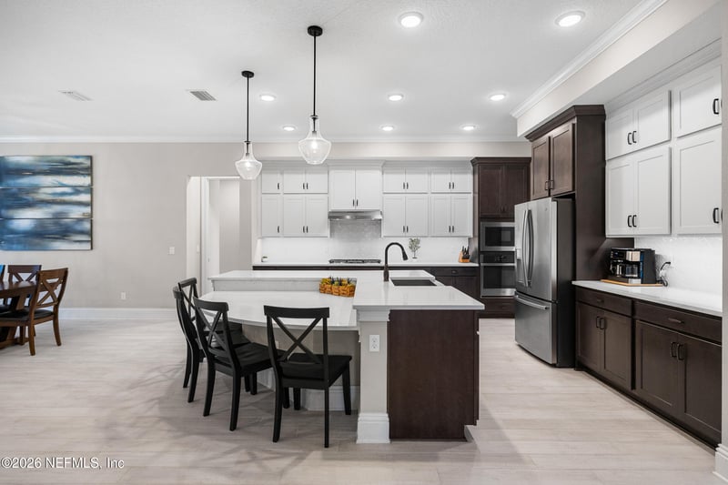 Listing details for 216 Oxbridge Way, St Johns, FL 32259 : Experience the best of Florida living on a .33-acre preserve lot in the exclusive gated community of Oxford Estates-with NO CDD fees and a low HOA! This executive 5-bedroom, 4-bath pool/spa home boasts a private office and study nook. Inside, wood-look tile flooring, soaring 10-foot ceilings, classy crown molding, designer lighting, upgraded 8-inch raised baseboards, and solid-core 8-foot doors with 3 1/2-inch door casing create a refined interior, while abundant natural light fills the home with warmth and elegance. The gourmet kitchen features an extended quartz island, double-stacked soft-close cabinetry with under-cabinet lighting, stylish tile backsplash, farmhouse sink and a custom pantry with wood shelving. The inviting living room showcases a coffered ceiling, upgraded ceiling fan and serene preserve views. The expansive primary suite offers a double tray ceiling, bay windows, his-&-hers walk-in wardrobes with custom built-ins and direct access to the laundry room. The spa-like en suite bath offers a large dual sink vanity, upgraded tiled walk-in shower and relaxing garden tub. The home also offers spacious secondary bedrooms including 4th bedroom with pocket doors, an en suite bath and enhanced sound insulation. A private office/flex space, accessed through double doors, is thoughtfully designed for privacy with sound-resistant insulation. Wood-tread stairs lead to a large bonus room/5th bedroom with an en suite bath-perfect for multi-generational living or as an entertainment space! Step outside through double glass French doors to your private backyard oasis: birdcage-screened lanai, heated saltwater pool and spa with travertine flooring-ultimate setting for entertaining, relaxing or enjoying peaceful preserve views. The fully fenced backyard provides plenty of space for kids and pets to play while enjoying year-round resort-style living! Additional highlights include a walk-in attic with spray foam insulation, central vacuum system, water softener and a spacious 4-car garage with utility sink. Just steps from the community amenity center with pool, playground, dog park and more! This home is located within a serene, secure gated neighborhood and zoned for top-rated St. Johns County schools, with convenient access to 9B, shopping, dining and entertainment-perfect blend of privacy and everyday convenience!