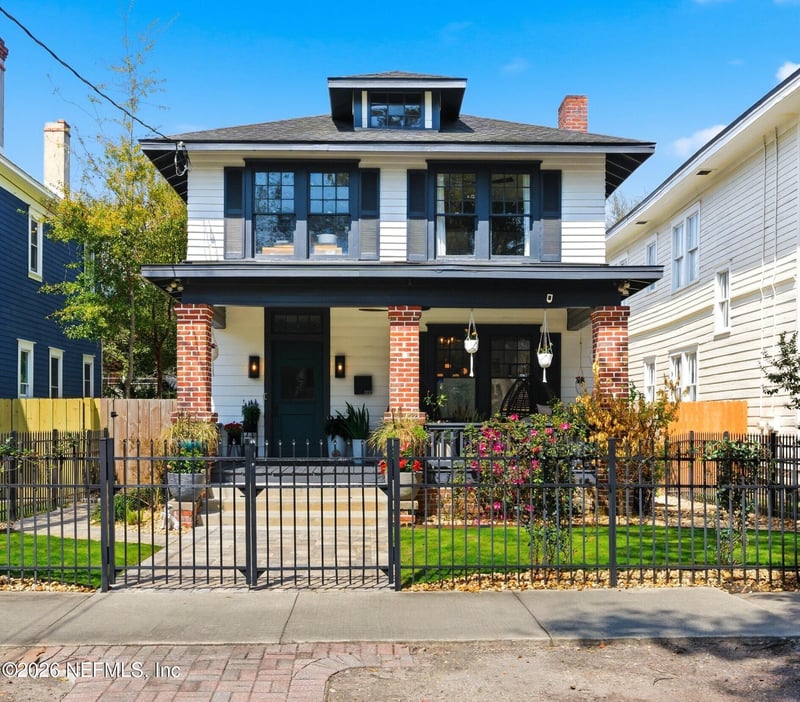 Listing details for 2221 Post St, Jacksonville, FL 32204 : Charming 1913 Craftsman in the heart of Riverside featuring four true bedrooms, including an owner's suite with private ensuite bathroom. This home beautifully blends preserved historic details with thoughtful updates. Inside, you'll find soaring ceilings, original hardwood floors, rich wood trim, picture rail molding, a stunning staircase and a classic mantled fireplace anchoring the inviting living room. The main level offers wonderful flow with a gracious living room, a lovely formal dining room and a comfortable family room overlooking the backyard, all filled with natural light. The kitchen maintains its original character and functional layout, while the downstairs bathroom has been tastefully renovated. Upstairs, the owner's suite features a walk-in shower and two walk-in closets and one secondary bedroom includes built-in storage. Enjoy the welcoming front porch and a private backyard oasis complete with pavers, patio space, lush landscaping and an outdoor Hot Tub. Additional features include a Culligan water softener and a laundry room with utility sink. Just a short walk to neighborhood favorites restaurants like Hawkers Asian Street and Hoptinger Bier Garden, plus dozens of restaurants and boutiques, this home offers the best of Riverside living.