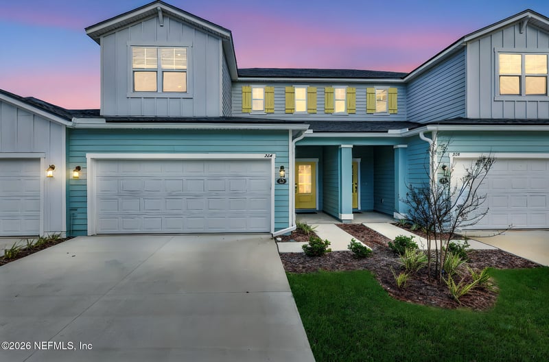 Listing details for 224 Misty Harbor Tc, Palm Coast, FL 32137 : The Sago floor plan offers 1,853 square feet of stylish and functional living space. This two-story home features three bedrooms, two and a half bathrooms, a versatile bonus area, and a convenient first-floor owner's suite. A two-car garage provides ample storage. Interior highlights include wood-look tile in the main living areas, quartz countertops, a gourmet kitchen with stylish kitchen backsplash, floor-to-ceiling tile in the master bath, and a steel tub with tile surround in the secondary bath. Additional features include a tray ceiling in the loft and iron spindles on the staircase. Located in The Hammock by Dream Finders Homes, a gated community of just 51 residences, this neighborhood offers a clubhouse with a pool, hot tub, and party kitchen. The HOA covers roof replacement, exterior maintenance, and landscaping for a truly maintenance-free lifestyle. Surrounded by parks and preserves and just 10 minutes from the beach.