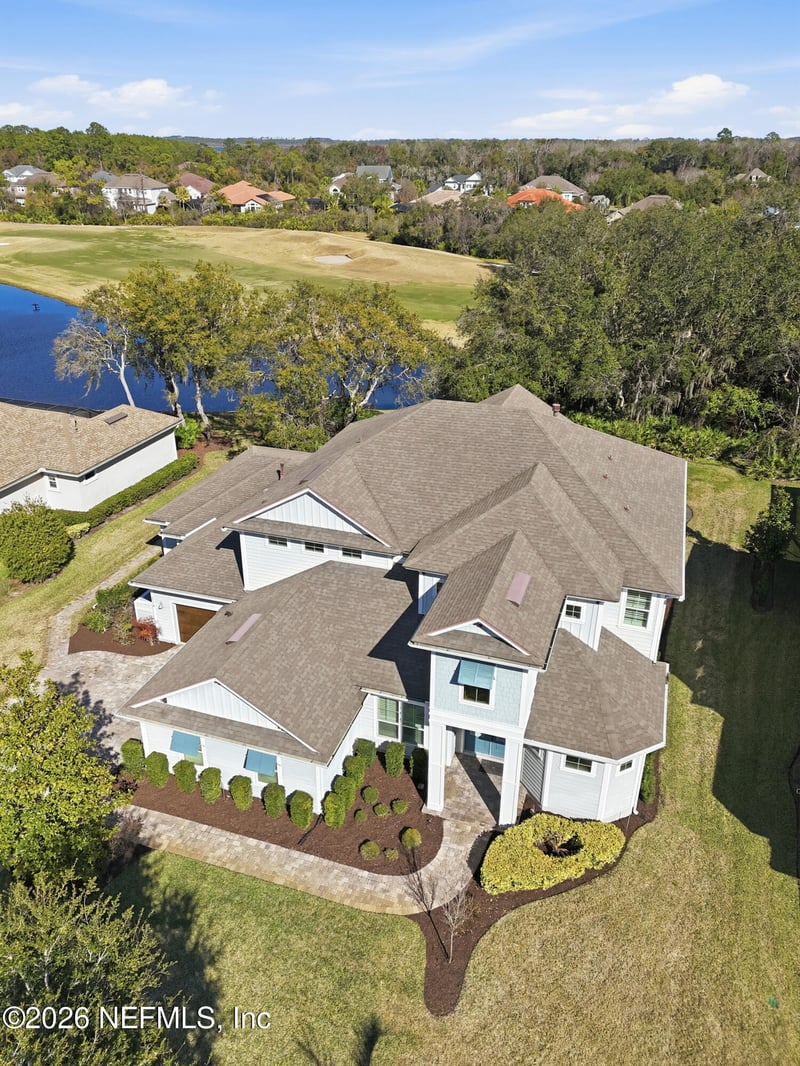 Listing details for 224 Vale Dr, St Augustine, FL 32095 : This former Cornerstone model home is situated on a private lot overlooking the water and the 13th fairway in Palencia. This sought-after multi-generational floor plan includes a 700-square-foot generation suite with a separate entrance, a spacious living room, a kitchenette, and a bedroom with an ensuite bath. Complete with a pool, spa & outdoor summer kitchen, this home is ideal for year-round indoor outdoor living & entertaining. Inside, you'll find a bright and open floor plan with five bedrooms, a study, a loft bonus room, and over 4,700 square feet of living space. The family room showcases 20' coffered ceilings, second-story transom windows, built-in bookcases, and a linear fireplace. 12' slider doors open out to a covered screened lanai with a heated saltwater pool & spa. The spacious kitchen boasts crisp white shaker cabinetry, a two-toned island breakfast bar, quartz countertops, a gas cooktop, and a walk-in pantry with custom shelving. (Continued) The generation suite has its own entrance off the split one-car garage, offering both convenience and privacy. Complete with a living room, a kitchenette, an ensuite bedroom & 700 sqft of living space, this floor plan is ideal for multi-generational living. An eye-catching stairway leads up to a second-floor open loft w/ additional living space & a walk-in closet. Upstairs finds three additional bedrooms & two full baths. A spacious, covered upstairs balcony offers sweeping views of the water and the golf course. You'll find upgraded finishes throughout, like continuous engineered hardwood flooring downstairs, LVP flooring upstairs, custom closets, 8' doors, wainscoting & shiplap & plantation shutters. A hallway leads back to a built-in stop-and-drop and a walk-in laundry room, complete with a dog-washing station, a soaking sink & upper and lower cabinetry. The attractive coastal exterior features low-maintenance Hardie siding & shakes, Bahama shutters & a split 3-car garage. There's a well for irrigation & landscape Lighting Located in the sought-after gated community of Palencia, home to world-class amenities, an A-rated Elementary school & a championship Arthur Hills-designed golf course. Residents enjoy a fitness center, three community pools, lighted clay tennis courts, pickleball, sports fields, pocket parks, fitness trails, and a boardwalk leading to the Intracoastal.