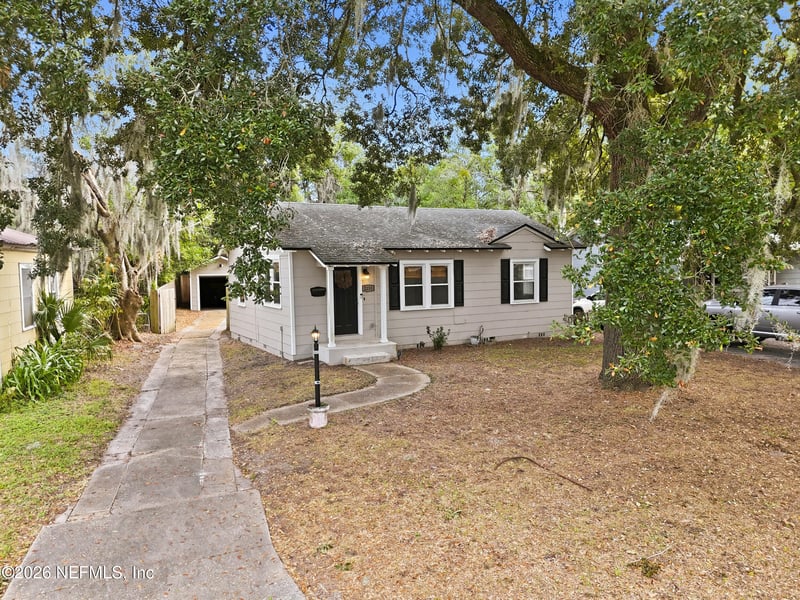Listing details for 2253 Home Park Cir, Jacksonville, FL 32207 : VERY POPULAR! Won't last long! Discover the perfect blend of historic charm and modern updates in this super-cute 1943 bungalow located in the desirable St. Nicholas area, less than 2 miles from the vibrant dining and shopping of San Marco, under 4 miles to Everbank stadium, and convenient to downtown. Enjoy gleaming hardwood floors, original brass doorknobs, fresh paint (2021), and a renovated kitchen featuring stainless steel appliances. Major updates completed in 2017 include a new roof, AC system, and water heater, with a new electrical panel added in 2021. Relax on the screened-in patio overlooking a large, fully fenced backyard—perfect for pets, parties and play. Includes a rare detached garage with power and additional storage. This home is a must-see with much more space than its sq footage suggests, it is tucked away, but still walking distance to parks, shops, and the Douglas Anderson School of Performing Arts. This one won't last long!