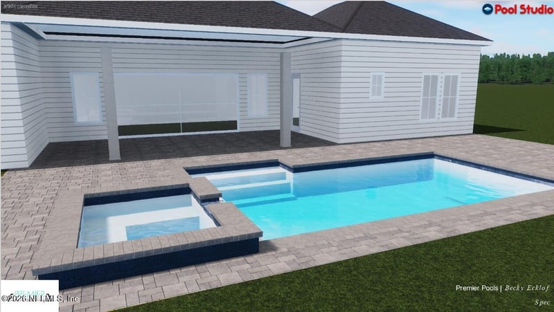 Listing details for 23 Pine Grove Point, St Augustine, FL 32092 : Exceptional ''Cameron'' new-construction single-story POOL HOME on a coveted corner homesite, crafted by Mastercraft Builder Group within the gated enclave of Courtney Oaks at Silverleaf. Offering 3,508 square feet of refined living, this home features four bedrooms, three-and-a-half baths, a private study, formal dining room, and an impressive four-car courtyard-entry garage. RevWood pale oak flooring anchors the main living areas, enhanced by soaring 12-foot ceilings and stacked transom windows that bathe the interiors in natural light. The owner's suite is a true retreat with dual walk-in closets, separate vanities, a freestanding soaking tub, and an expansive walk-in shower with dual shower heads. The gourmet kitchen is a showpiece, showcasing double-stacked neutral cabinetry, warm gold hardware, and a generous island ideal for gathering. Your at home entertainment is complete with an inground saltwater pool and hot tub with screen enclosure.