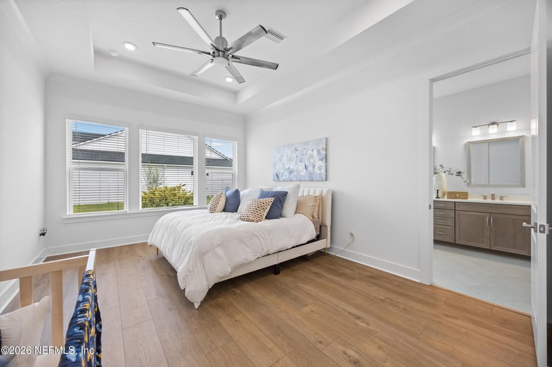 Listing details for 23 Sparrow Point, St Augustine, FL 32092 : NO CDD fees + 5.375 VA assumable loan! This stunning 4-bedroom, 3.5-bath executive home with private office, flex space and sun room is situated on a corner cul-de-sac lot in the gated Oak Grove at Silverleaf! Inside, you'll love elevated interior finishes including LVP flooring, 12' ceilings and classy crown molding, upgraded 5'' baseboards and abundance of large windows that flood the home with natural light. The gorgeous gourmet kitchen features a large quartz island, double-stacked white cabinetry, tile backsplash, GE Profile refrigerator, and extended butler's pantry with wet bar! The open and inviting living room showcases tranquil backyard views and collapsible sliding glass doors. The primary suite comes with tray ceiling, large walk-in closet and spa-like en suite. Relax and unwind with the stunning tiled walk-in shower and lovely garden tub. Spacious secondary bedrooms, private office with glass French doors and tray ceiling, flex room perfect for a kids area and a light-filled sun room complete the beautiful home. Enjoy true Florida living with seamless indoor-outdoor flow to a spacious covered lanai, overlooking a fully fenced backyard oasis with plenty of room for your dream pool or fire pit--perfect for relaxing and entertaining! Additional highlights include a wide paver driveway, 3-car garage, whole home gutters, attractive laundry room with cabinetry and folding counter, upgraded bathrooms with quartz countertops and a convenient garage ladder. Silverleaf residents enjoy resort-style amenities including pools, splash pad, sports courts, dog park, scenic nature trails and more-all while being conveniently located near top-rated schools, shopping, dining, Downtown St. Augustine and with a new hospital and Publix coming soon!