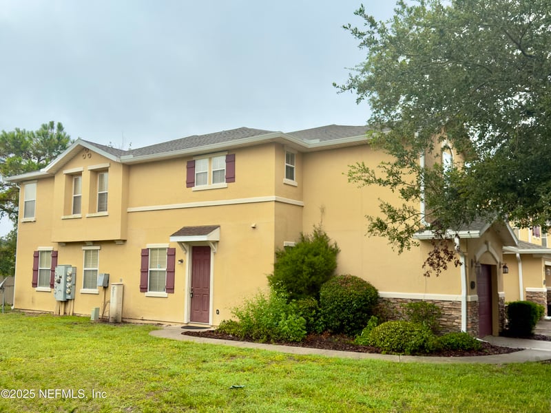 Listing details for 2304 Sunset Bluff Dr, Jacksonville, FL 32216 : Bright end-unit townhome with space, light, and a smart layout. Main level opens to a large living/dining area with wood floors and recessed lighting. Kitchen offers stainless appliances, solid-surface counters, tile backsplash, pendant lighting, and a breakfast bar. Half bath off the foyer; attached garage for easy parking/storage. Upstairs, the private primary suite features a double-tray ceiling and walk-in closet; two additional bedrooms share a full bath. Flexible loft/bonus room plus upstairs laundry. Fresh updates: all new interior paint on every wall, baseboard, and trim—clean and move-in ready. Corner placement = extra windows and only one shared wall. Community perks include low HOA fees and a new City of Jacksonville park nearby at Villages of Summer Lakes. Tile in kitchen/dining, wood in main living, carpet in bedrooms. Neutral finishes, great storage, and an easy, low-maintenance lifestyle in a convenient location near shopping, dining, and commuter routes.