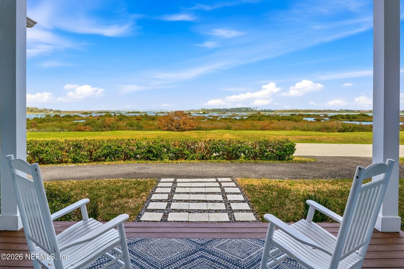 Listing details for 2406 Shore Dr, St Augustine, FL 32086 : Welcome to 2406 Shore Drive, where a meandering road hugs the Matanzas River and leads you to an elegant waterfront retreat. Set on an elevated corner lot, this custom home captures sweeping panoramic river views and the relaxed charm of St. Augustine living. Originally built in 1956 and beautifully recreated in 2023, the 4-bedroom, 4-bath residence offers approximately 4,000 sq ft of thoughtfully designed living space filled with natural light and stunning water vistas from the open main living areas. Comfort and craftsmanship blend seamlessly throughout, creating a home designed for gathering and savoring life's best moments. A breezeway connects the home to a four-car garage topped with a fully equipped, spacious studio apartment--ideal for guests, extended family, or additional income. STR eligible, this property presents a rare opportunity for both personal enjoyment and investment potential, all just minutes from historic downtown St. Augustine.