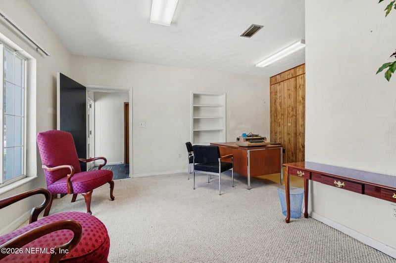Listing details for 2422 University Blvd, Jacksonville, FL 32217 : AUCTION! List price is starting bid ONLY! O/H is 5/2/26 12:00-2. Versatile commercial property, now offered at auction. This well-appointed building is designed to support a wide range of professional uses, featuring six private offices that provide both functionality and flexibility for growing businesses or established operations. Inside, you'll find a convenient kitchenette, ideal for staff comfort and day-to-day efficiency, along with ample storage space. The layout offers a practical flow, making it easy to customize for your specific business needs. The exterior is equally impressive, boasting a private driveway and dedicated parking, an increasingly valuable asset that ensures ease of access for both employees and clients. ROOF 2024, ELECTRICAL PANEL 2023, AC 2024. 6 offices, non conforming rooms. The property on the lot was originally designed and constructed prior to adoption of the county comprehensive plan.