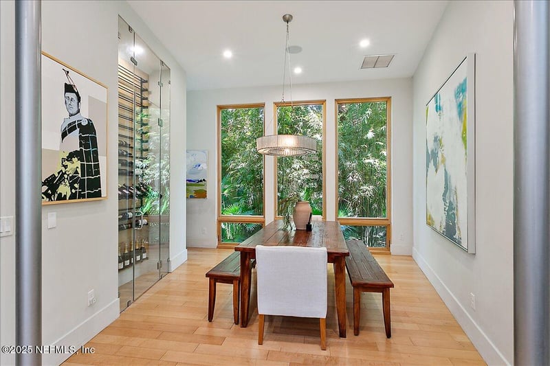 Listing details for 2446 Seminole Rd, Atlantic Beach, FL 32233 : Steps to the ocean/ walk or bike to town center. This is a very rare offering in Atlantic Beach to own a private 1 acre legacy lot (73' x 600') with a stunning custom built, contemporary home w/screened pool, spa & summer kitchen and bar. Home was designed by James Dupree as a 2-story home with 3 levels & built by Signature Homes with attention to design, detail and quality throughout. 1st floor features a separate dining room with a custom wine wall display, great room chefs' kitchen w/sleek, white acrylic lacquer cabinets, quartz countertops, gas cooktop, breakfast bar & nook, walk-in pantry. Great room has beautiful fireplace and floor to ceiling windows & sliders overlooking pool & an expansive back yard with room for play or hobbies. 2nd level has a guest room w/full bath plus a den/flex room with a wall of windows. 3rd level is lavish master suite surrounded with windows, luxurious bath with stunning shower & separate tub featuring sea glass, Private, gated drive.