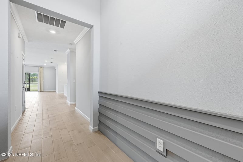 Listing details for 25 Old Bull Bay Ct, St Augustine, FL 32084 : New Construction, Model Home in the desirable St. Augustine Lakes community, featuring the Trevi floorplan. This 4BR/3BA, 2,028 sq ft home offers a bright, open layout with crown molding, chair molding in the foyer, and designer blue interior doors for a custom touch. The gourmet kitchen includes white cabinetry, quartz counters, an electric cooktop, double wall ovens, microwave, walk-in pantry, fridge, & dishwasher. Perfect for everyday living and entertaining. The spacious living area features built-ins and opens to the screened paver lanai through a 3 panel slider for seamless indoor/outdoor living. The primary suite offers two walk-in closets, double sinks, a garden tub, and a separate shower. An additional ensuite bedroom plus two guest rooms provide ideal flexibility. Wood look tile, upgraded lighting, laundry room, and a paver driveway complete this beautiful move-in-ready home. Lender Credit up to $3,500 w/ preferred lender. This is the last Model Home Available.