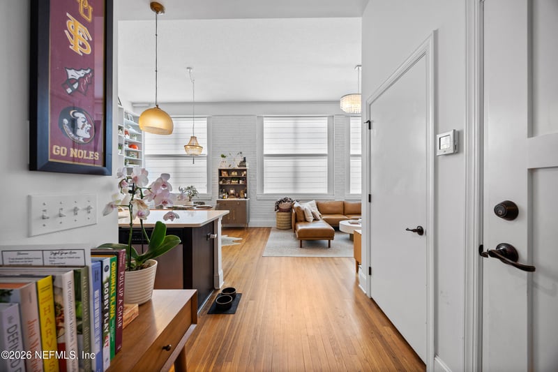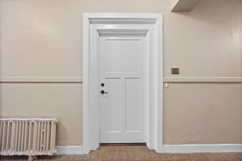 Listing details for 2525 College St #1113, Jacksonville, FL 32204 : Rare first-floor 2-bedroom, 2-bath residence in the iconic, gated John Gorrie building offers a perfect blend of historic charm and modern convenience. Located in the heart of Riverside, this home boasts soaring 17-foot ceilings, original wood floors, exposed brick, and stunning built-ins. Flooded with natural light from oversized windows, the open floor plan creates a bright and airy atmosphere. The kitchen features stainless steel appliances, quartz countertops, and ample storage. Both bedrooms offer en-suite bathrooms, with a renovated primary bath and a clawfoot tub. A split bedroom plan, walk-in closets, and a separate laundry room enhance the home's functionality. Enjoy two assigned parking spaces, a fitness center, and easy access to dining, boutiques, and the St. Johns River. Low-maintenance living in a well-maintained, historic building. Schedule your tour today and experience this charming urban retreat!