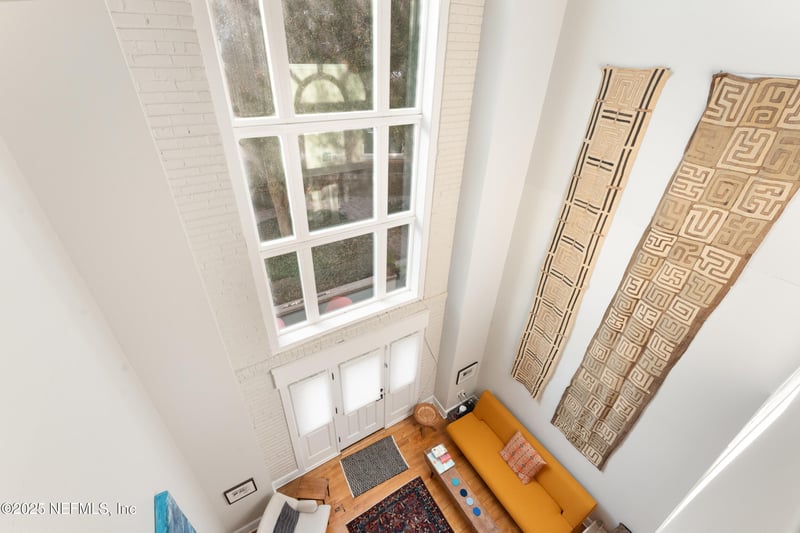 Listing details for 2525 College St #1115, Jacksonville, FL 32204 : A stylish, unique, two-story, loft-condominium with much exposed brick in Jacksonville's historic Riverside. Impressive, 28-foot-high ceilings stretching from the living room to loft bedroom accentuate the architectural, gallery-like feel to this special unit first built in 1923. Many in-set alcoves for displaying art in this elegant unit with a split floorplan, beautifully renovated with high-end touches, upscale lighting, and sophisticated ceiling fans. The kitchen renovation added tasteful, custom-made open-shelving; a backsplash of artisanal Italian teal tiling; and all Fisher-Paykel appliances. An attractive, flexible alcove near the kitchen makes a great reception area or office space or formal dining room. Unique elements abound. Floor-to-ceiling book shelving in the front bedroom (or study); and a charming, long space with shelving and bright lighting, currently a library & reading room. The latter could be transformed into a pantry, wine cellar, storage area, or office). Premium lighting is everywhere with dimmable fixtures embedded in the living, dining, and kitchen spaces, and track-lighting in the bedroom/study and alcove/entertainment areas. Two generous bedrooms: each with a very large, full bathroom (one tub, one shower), and ample storage. The exquisite walk-in closet in the master/ground bedroom, with an array of drawers and shelves, enables superb organization. The unit's exclusive entrance passes through a private, extra-large, outdoor space in stone with historic features; it is perfect for entertaining and gardening. This vast terrace is steps from the Gorrie gardens, the parking lot, and a gate heading outside by foot for shopping or river walks. A second entrance leaves the unit into the old school building for waste disposal, mail pick-up, and common spaces (library and courtyard). The fitness center entry faces the unit. Two assigned parking spaces include the complex's nearest (ultra convenient for unloading!). Best of all, the unit is very quiet, and Riverside's best coffee and bicycle shops are just two minutes away.