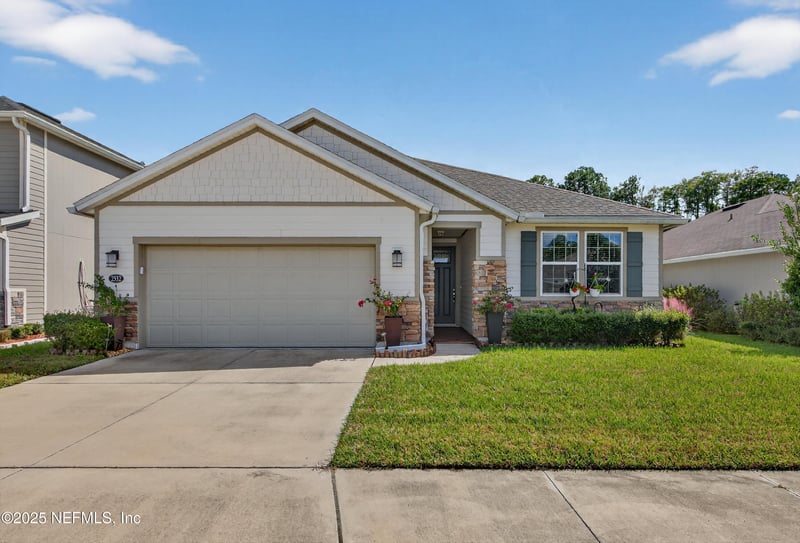 Listing details for 2532 Coral Ln, Green Cove Springs, FL 32043 : NO CDD LOW HOA! Price Reduced! Open House Sunday 1-24-26 Hosted by Robert Woods and Shelba Williams!! 11 - 3 PM!! Come say Hello and tell me what you think! We will have Refreshments!! Must see beautiful, like-new 4-BR, 2-BA home in Lake Asbury Area! This open floor plan features upgraded Stainless Steel appliances, gorgeous gray cabinets, and a quartz countertops, island overlooking the family and dining areas. Luxury vinyl plank flooring runs throughout. The split bedroom layout provides privacy, with a spacious primary suite offering a walk-in shower and double sinks. Enjoy the screened lanai with shark-coated flooring and a peaceful backyard view. Additional features include 9-foot ceilings, an 8-foot entry door, French doors with remote blinds, inside laundry Washer & Dryer stays, and a 2-car garage with shelving and a shark-coated floor. Located close to shops, restaurants, and the 23 expressway. Move-in ready and well maintained!
