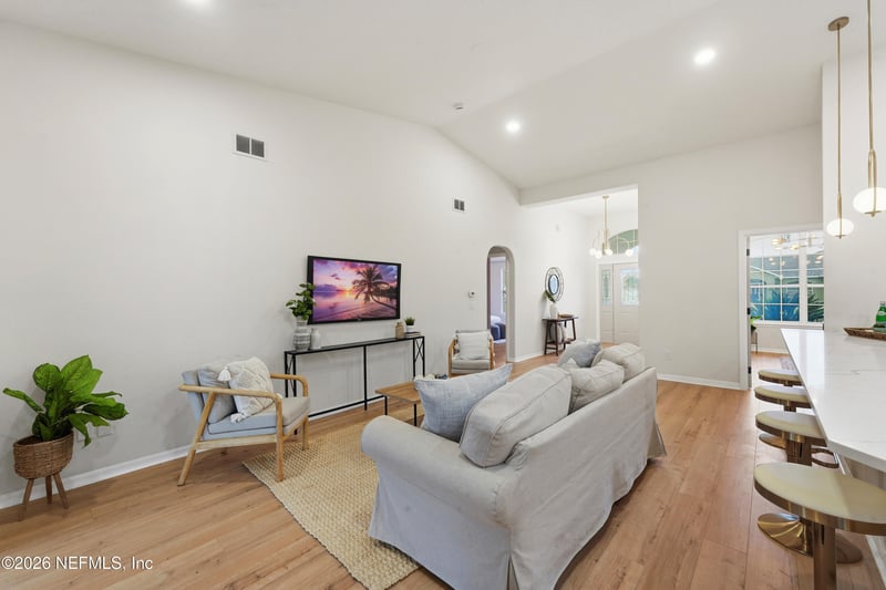 Listing details for 26 Fairchild Ln, Palm Coast, FL 32137 : Step into refined living with this impeccably upgraded 4 bedroom, 2 bathroom residence, where thoughtful design and elevated finishes create a truly exceptional home. The gourmet kitchen is a showpiece, featuring exquisite quartz countertops, custom solid wood soft close cabinetry, and a premium suite of GE Café appliances, perfectly blending sophistication and functionality. Spa inspired bathrooms showcase designer tile work and curated finishes, offering a serene, high end retreat. Throughout the home, striking designer light fixtures enhance the ambiance with a modern, elegant touch. Outdoors, indulge in your own private sanctuary with a fully screened-in pool, providing a seamless indoor-outdoor lifestyle ideal for both relaxation and upscale entertaining. Every detail of this home has been carefully selected to deliver a luxurious living experience.