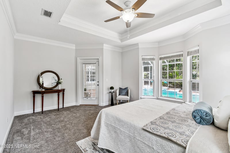 Listing details for 2612 Seneca Dr, St Johns, FL 32259 : Beautifully updated 5BR pool home on the 8th green in gated Cimarrone Golf & Country Club! This home has a great layout with 3 bedrooms downstairs and 2 large upstairs sharing a locker-style bath—perfect for family or guests. The open kitchen overlooks the breakfast nook and family room with a huge quartz island, new refrigerator, and new garbage disposal. The primary suite offers golf course views with privacy. Recent updates include: new HVACs (2 units), electrical panel, water heater, interior & exterior paint, updated plumbing valves and fixtures, new lighting & fans throughout, new walk-in tub, and new smoke detectors. Heated pool just re-marcited with new tile, salt cell, light, timer and freshly painted pool deck. New aluminum fence (2021). Enjoy the screened pool, golf views, and 24-hr guarded community with great amenities—Basketball, Pickleball, Tennis and a Dog Park - move-in ready and better than ever! (Buyer to verify all measurements.)