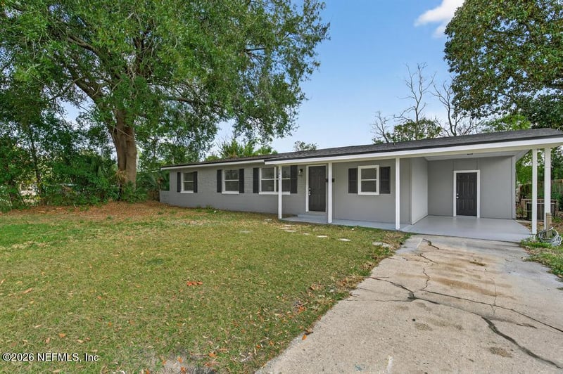 Listing details for 2615 Kershaw Dr, Jacksonville, FL 32211 : **SELLER OFFERING A $2,500 CREDIT WITH AN ACCEPTABLE OFFER** Welcome home to this FULLY RENOVATED 4-bedroom, 2-bathroom home in the heart of Arlington - central to everything. This move-in ready gem features: a BRAND NEW roof, upgraded plumbing & electrical, upgraded kitchen and baths, fresh interior and exterior paint, upgraded fixtures, and a large fenced in backyard. Step inside to find an open, spacious floorpan in the main living areas with plenty of natural light, and brand new LVP floors throughout. The chef's kitchen is complete with granite countertops and brand new white cabinets. Kitchen appliances will be installed prior to closing. The bathrooms have large walk-in showers, new tub and new vanities with granite tops. Bedrooms feature plenty of natural light, large closets, and plush carpets. Room for parking and extra storage in your large 1-car carport. Laundry hookup in unit. Entertain with family and friends in your large backyard. Located on a quiet street in safe, neighborhood central to beaches and downtown. Nearby to shopping, restaurants, major highways, and schools. Call for a private showing today!