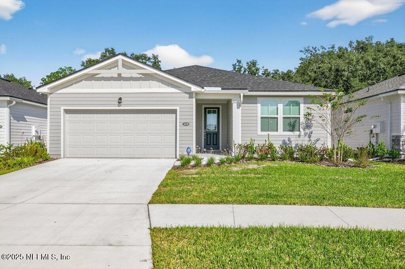 Listing details for 2639 Firebrush Ln, Green Cove Springs, FL 32043 : 4.99% VA Assumption Available! Sellers have an unexpected move—take advantage of this incredible opportunity! Welcome to this beautiful home in the sought-after Sandridge Hills community, perfectly situated at the end of a quiet cul-de-sac. Built in 2025, this home offers modern design with thoughtful upgrades and added features that truly set it apart from other new construction—plus, no CDD fees! Step inside to a bright, open-concept floor plan filled with natural light and elegant finishes. Enjoy 3 spacious bedrooms plus a versatile bonus room—ideal for a home office, playroom, or gym. The interior has been freshly painted in a modern satin finish, and the fully fenced backyard and large screened-in porch create the perfect setting for outdoor entertaining. Sandridge Hills offers a wonderful community lifestyle with amenities including a pool, playground, and dog park—all within one of Clay County's top-rated school zones.